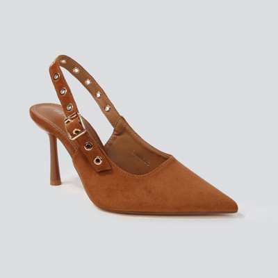 Complete casual, formal or dressy looks with trendy women’s heels & pumps. Be it open-toe, dress sandals with high heels or a pair of block heel wedges, the right heels can help elevate any outfit. Check out Target.com or shop in-store to find the latest collection of women’s heels & pumps, from mid-heel t-strap shoes to peep-toe pumps & heeled sandals. Explore a variety of heel heights, from sky-high to kitten heels, to find what works best for you. Low-heel, strappy sandals or square-toe wedges pair great with jeans, jeggings or casual dresses to lend a fashionable vibe to outfits. Pointed-toe curved pumps, clogs or stiletto heels add a little more drama to outfits for bold & edgy looks. Statement heels & pumps are all it takes to turn any outfit from blah to woah! Think high heels in suede or leather with ankle straps, faux-fur or studded accents for a making a stylish appearance.
