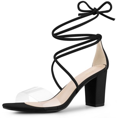 Perphy Women's Lace Up Strappy Clear Strap Chunky Heel Sandals