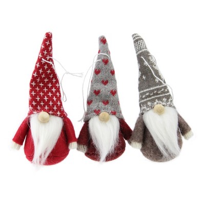 Northlight Santa Gnome Christmas Ornaments - 4.5" - Red and Brown - Set of 3