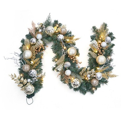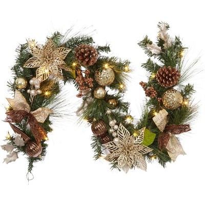6FT Christmas Garland with LED Lights Battery Operated, with Berries Pine Cones Bells for Mantle Staircase Porch Indoor Outdoor