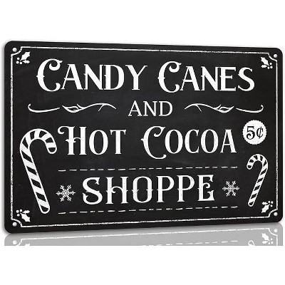 Lomsoe Candy Canes and Hot Cocoa Shoppe Metal Tin Sign Christmas Vintage Art Poster Home Wall Decor For Kitchen Cafe Farmhouse Retro Plaque 8x12 Inch