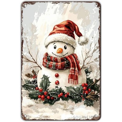 Lomsoe Christmas Sign Snowman Tin Sign Vintage Winter Metal Sign Rustic Wall Decor for Porch Yard Home Kitchen Outdoor Outside 12¡Á8 Inch