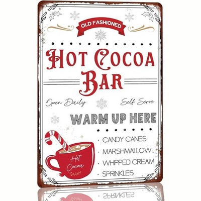 Lomsoe Hot Cocoa Metal Tin Sign Retro Christmas Decor for Home Kitchen Vintage Hot Cocoa Bar Sign Christmas Gift 8x12 Inch