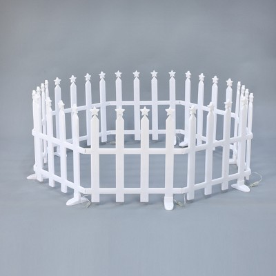 LuxenHome 8-Piece Light Show Star-Topped Fence Design Outdoor Decoration White