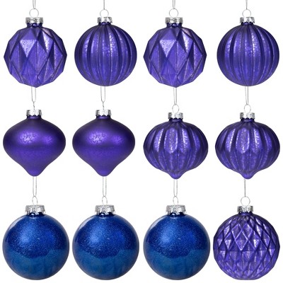 Northlight Multi Finish Ball and Onion Christmas Ornaments - 3.25" - Royal Blue and Purple - Set of 12