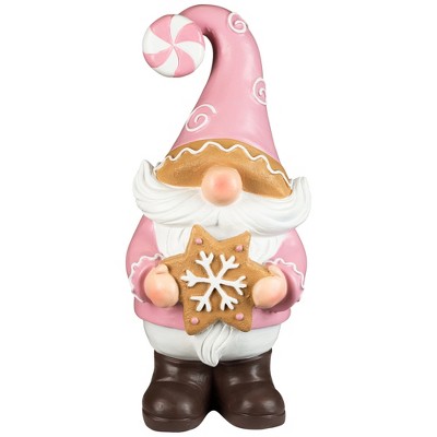 Northlight Christmas Gnome Holding Gingerbread Snowflake Cookie Decoration - 11.5" - Pink