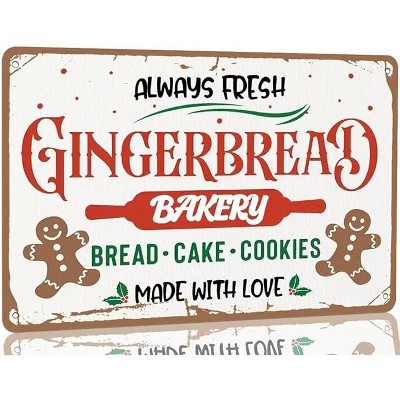 Lomsoe Christmas Cake Tin Sign Vintage Gingerbread Metal Tin Sign Christmas Wall Decor for Kitchen Farmhouse Restaurants Cafe 8x12 Inch
