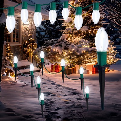Joyfy 30.75ft C9 Christmas Walkway Lights, 24 White LED Bulbs Pathway Light, Christmas Light Decoration Waterproof & Connectable for Yard/Garden