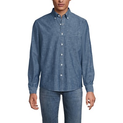 Lands' End Men's Traditional Fit Solid No Iron Supima Pinpoint Buttondown Collar Dress Shirt