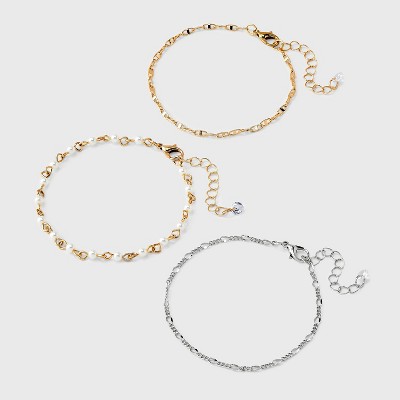 Beaded and Pearl Bow Charm Bracelet Set 5pc - Wild Fable™ Gold