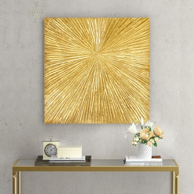 AZL1 Life Concept Wall Art Hand Painted Dimensional Resin Modern Abstract Sunburst with Metallic Gold Finish for Home, Gold, 32.68"*32.68"*1.97"