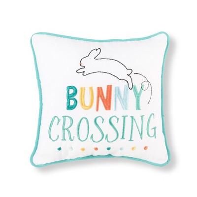 C&F Home Jumping Easter Bunny "Spring" Hooked Accent Throw Pillow, 16" x 16"
