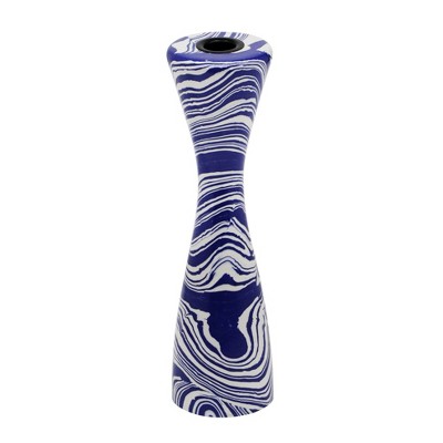 Serene Blue & White Swirl Resin Candlestick Blue & White Swirl 3"DIA x 12"H