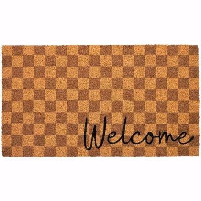 Folkulture Welcome Matt Outdoor | (16" x 28") Checkered Door Mat for Outside Entrance, Doormats for Home