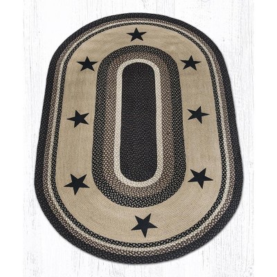 Earth Rugs Handcrafted Black Stars Oval Jute Tread 5'x8' Eco-Friendly Rustic Accent