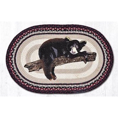 Earth Rugs Rustic Cabin Oval Patch Tread – 2'x8' Braided Jute Rug with Bear Design