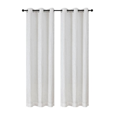 Kate Aurora 2 Piece Gray & White Crushed Sheer Trellis Grommet Top Curtain Panels
