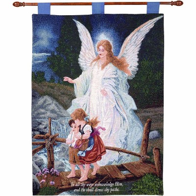 Faith and Protection Tapestry Throw – Guardian Angel Cotton 51x68 inch by Manual Woodworkers and Weavers