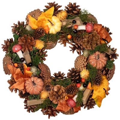 Northlight Pumpkins and Mushrooms Artificial Fall Harvest Wreath - 13" - Unlit