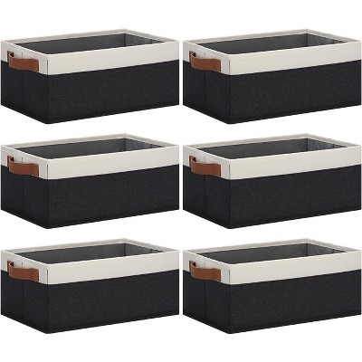 Aoibox Fabric Storage Bins with Faux Leather Handles Foldable Organizer Baskets for Shelves Closets Black White 6 Pack