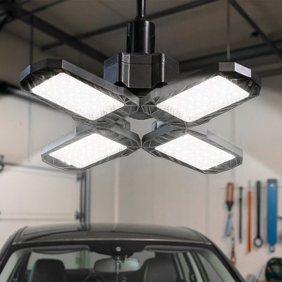 80-Watt Black Deformable LED Adjustable Garage Light Semi-Flush Mount Lighting, 4-Leaf 6000K Daylight White