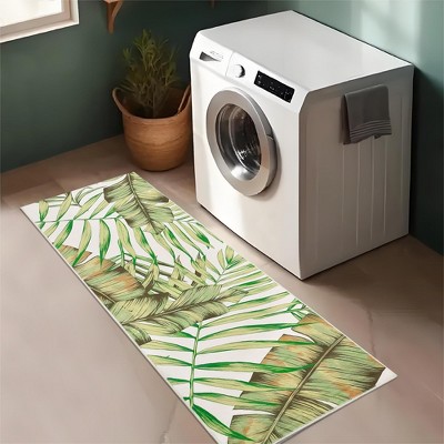 Modern Tropical Leaf Area Rug Soft Washable Rug Low Pile Non Slip Floor Carpet
