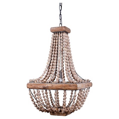 Allison Shabby Chic Farmhouse Wood Beaded/Metal LED Flush Mount - JONATHAN Y