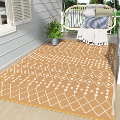 Abynow Geometric Waterproof Outdoor Area Rug-Black Brown