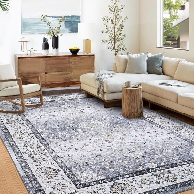 Coucheta boho Vintage Rug - Washable, Non-Slip Low-Pile Floral Accent Carpet for Home & Office