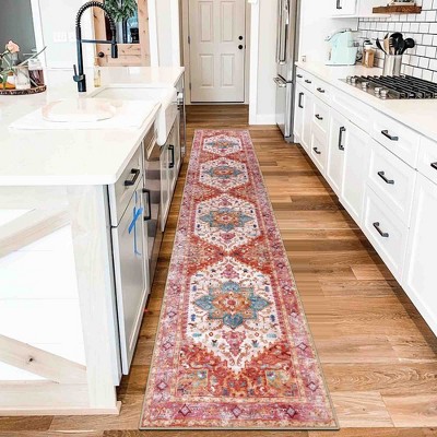 BAGOKIE Washable Vintage Boho Floral Runner Rug