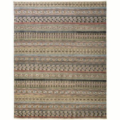 Tan Blue and Orange Striped Hand Knotted Area Rug
