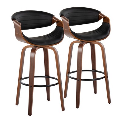 Mid-Century Modern Adjustable Swivel Barstool with Metal Base and Bent Wood Armrests, Set of 2