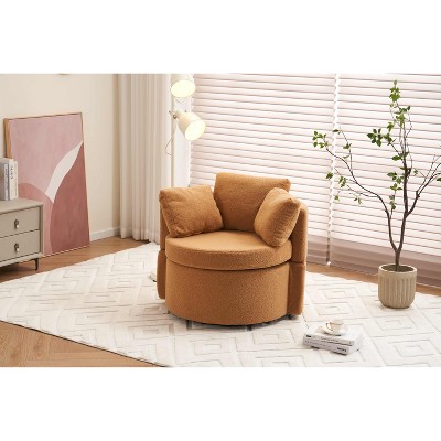 Genuine Leather Upholstered Barrel Chair, Swivel Accent Chair
