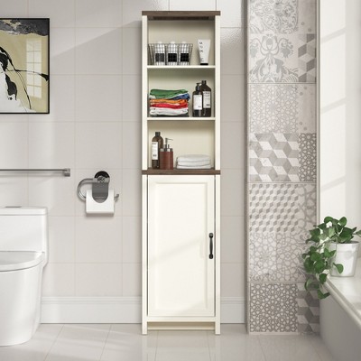 MAYEERTY Tall Bathroom Cabinet 2 Doors Drawers Adjustable Shelf MDF White