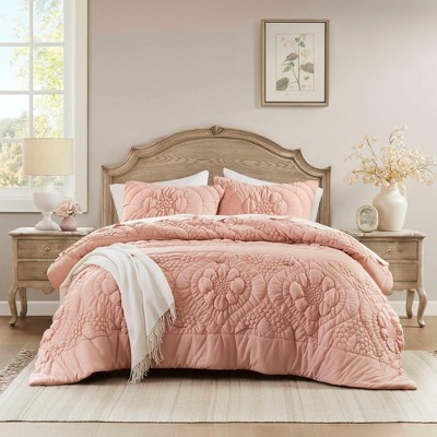 YOOCOZZ 3 Piece Cotton Comforter Set with Chenille Tufting - Gray