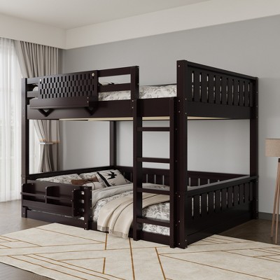 Bellemave House Floor Bed, Double Full Floor Bed with Door and Full-length Guardrails, Multi-function Design
