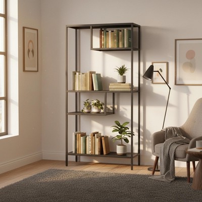 GustoWave 5 Tier Farmhouse Bookcase w/Display Rack & Fluted Design