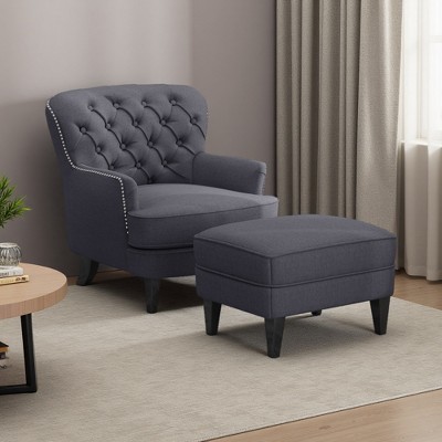 33" Polyester Club Chair with Ottoman Set and Birch Legs