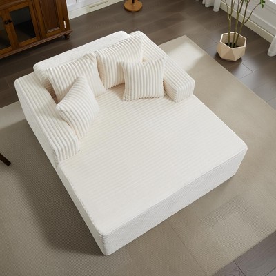Oversized 61 Inch Chaise Lounge Chair Corduroy Upholstered Sofa with 4 Pillows
