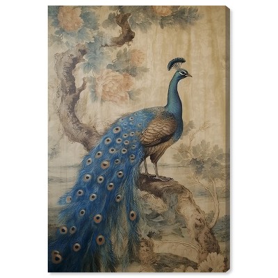 Art Remedy Glistening Peacock Retro Japan Unframed