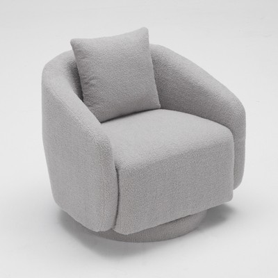 Dexmalle Wood Barrel Swivel Accent Chair with Pillow,Gray