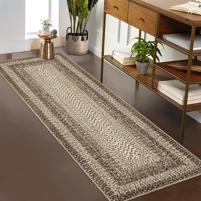 Washable Rug Scalloped Rug Non Slip, Farmhouse Braided Print Carpet