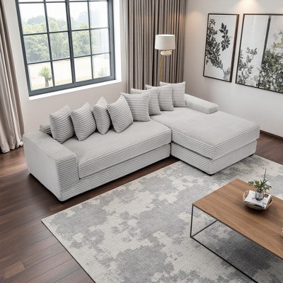 118" Corduroy Cloud L-Shaped Sectional Sofa, Double-Layer Cushions