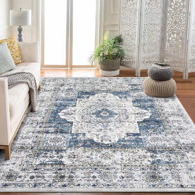 Abstract Machine Washable Rugs with Non-Slip Backing Stain-Resistant Low Pile Rugs