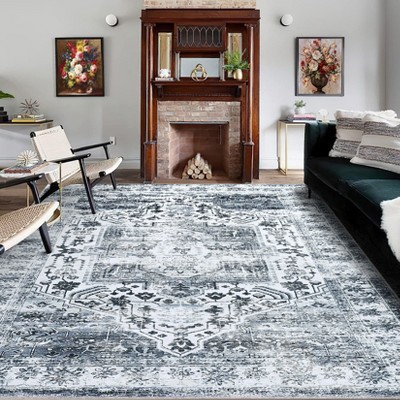 MontVoo Machine Washable Oriental Floral Area Rug Brown