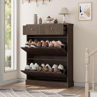 TackView Shoe Cabinet with 2 Flip Drawers & 1 Top Drawer,Narrow Shoe Organizer,for Home