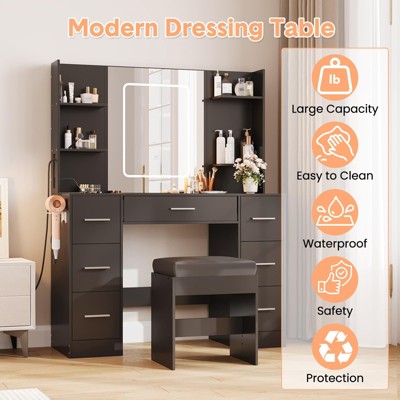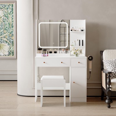 GDFStudio Clarion 31.5" W Wooden Vanity Table with Mirror and Stool