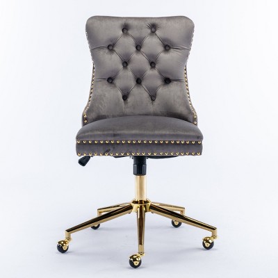 ChicFurnit Task and Office Chairs Velvet Upholstered Office Chair Swivel Chair Ergonomic Chair for Home Office, Gray, 25.5"*19.7"*37.4"