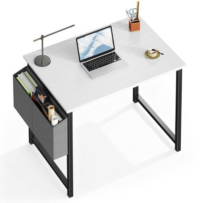 FONTOI Desks 31-Inch Computer Table with Side Storage Bag, Modern Workstation with Sturdy Legs for Bedroom Writing, White, 31.5"*19.69"*29.69"
