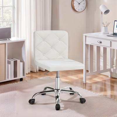Karl Home | 28.5 inch White Velvet Dovetail Swivel Office Chair With Wheels